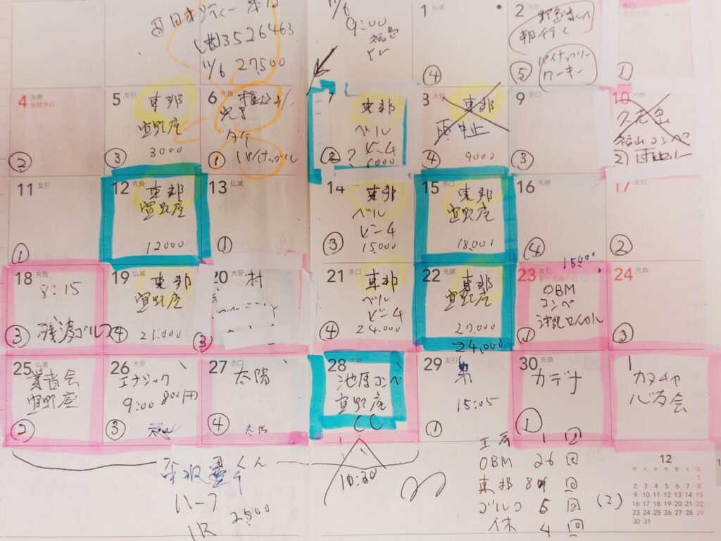 電話が切れて、自分から電話をしてみて「寝てました!」と言うと「今日老人会のコンペだよ!」と・・・。あれー???先月の老人会の時に11月に宜野座村の老人会のゴルフがあるので、14日は無しで、そちらに振り替えるって事を前回10月の老人会の反省会で話していて、自分のスケジュール帳に書き込んでいるだけど???