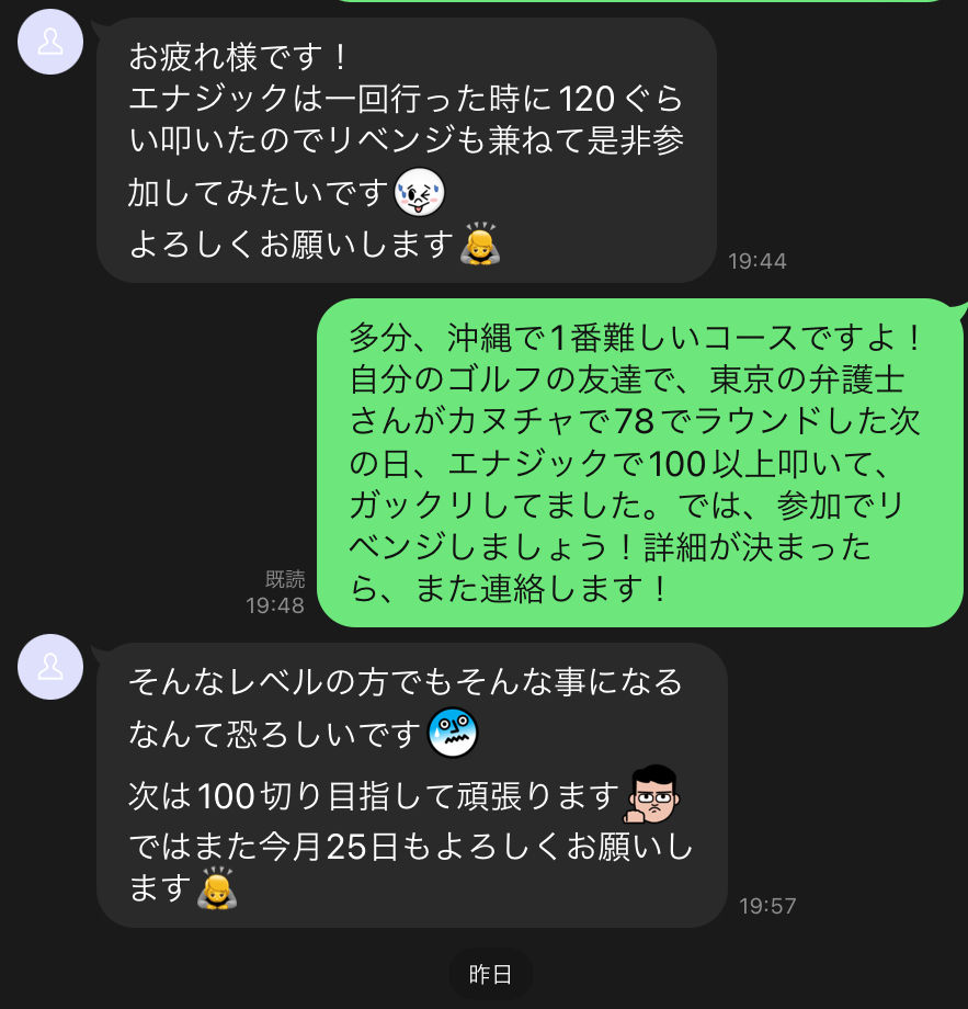 来年の1月に前に仕事をしていた、瀬高カントリークラブの元同僚の主催でオープンコンペの案内が来たので、自分の沖縄のゴルフ友達に声をかけてみました・・・、すぐに、参加申し込みが多数で、自分を入れて1組で参加のつもりが・・・あふれて、主催の友達に連絡して2組に枠を増やしてもらいました。