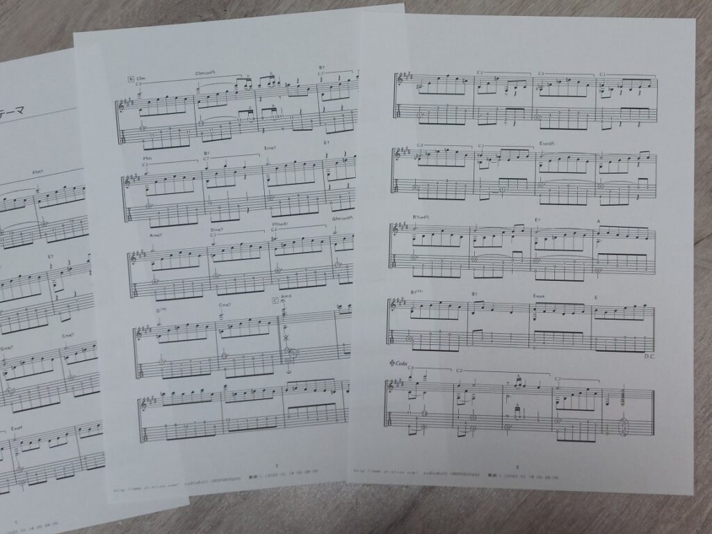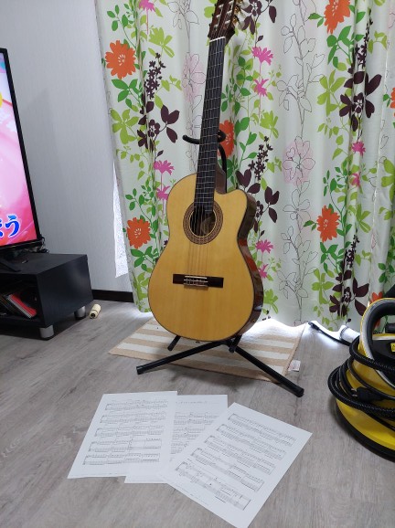 PS.便利な時代なんで、本屋?書店にに行かなくても、ネットで検索して、取り合えず、弾いてみたい曲の楽譜とギターTABを購入して、プリンターで印刷、これも、少しずつ?年内に何曲か弾けるようになれば良いな?