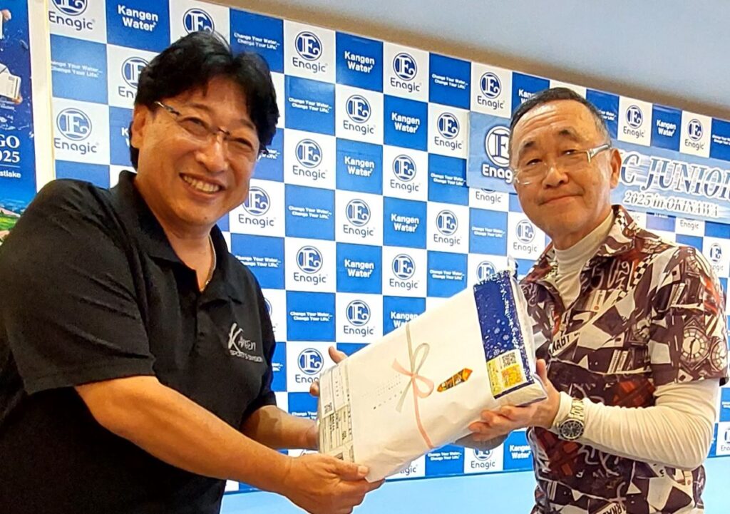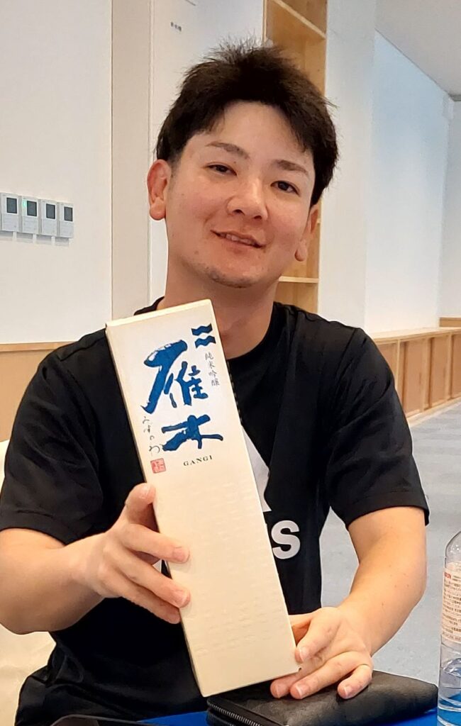 | 9位・比嘉ブラザーズの弟の泰斗くんが、純米吟醸酒と簡易クーラー |