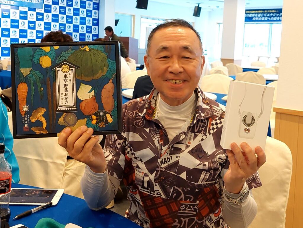 PS.テルリン工房から賞品提供した「ゆめぴりか」と「アサヒスーパードライ」も自分から、優勝の塚原さんと7位に入った安里さんに、直接お渡ししました!おめでとうございます!自分が選んだ賞品の「東京のおかき」は、早速セカンドワークの仕事場に持って行って、いただきました!