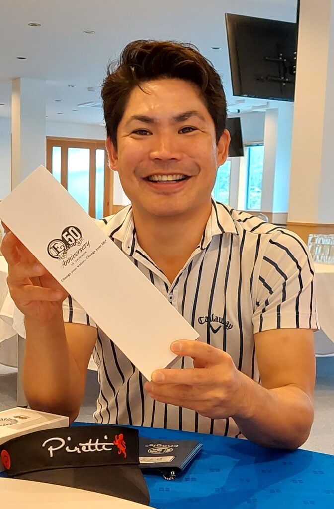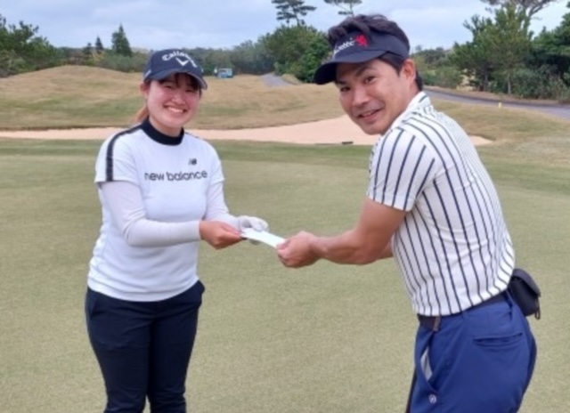 瀬嵩カントリークラブの「2025年を盛り上げようコンペwith中村愛子」に沖縄版チームテルリン?で参加して来ました。難コース、難しいセッティングで、スコアーはさて置き???。チームテルリンはこの日(26日)も絶好調でした。アトラクションで、中村愛子さんの、娘で女子プロゴルファーを目指している中村桜萌(なかむら あゆ)さん高校一年生(16)が、参加する全員とショートで対決!チームテルリンは、自分の後ろの組の3人、比嘉ブラザーズの、泰志くん泰斗くんと泊くんも、あゆさんに勝利して3人共に割引チケットをゲット。自分の組の国場さんもショートで中村桜萌より、ニアピンで割引券をゲットしました。7人中4人が勝利!これは全参加の中でも、かなり好成績!