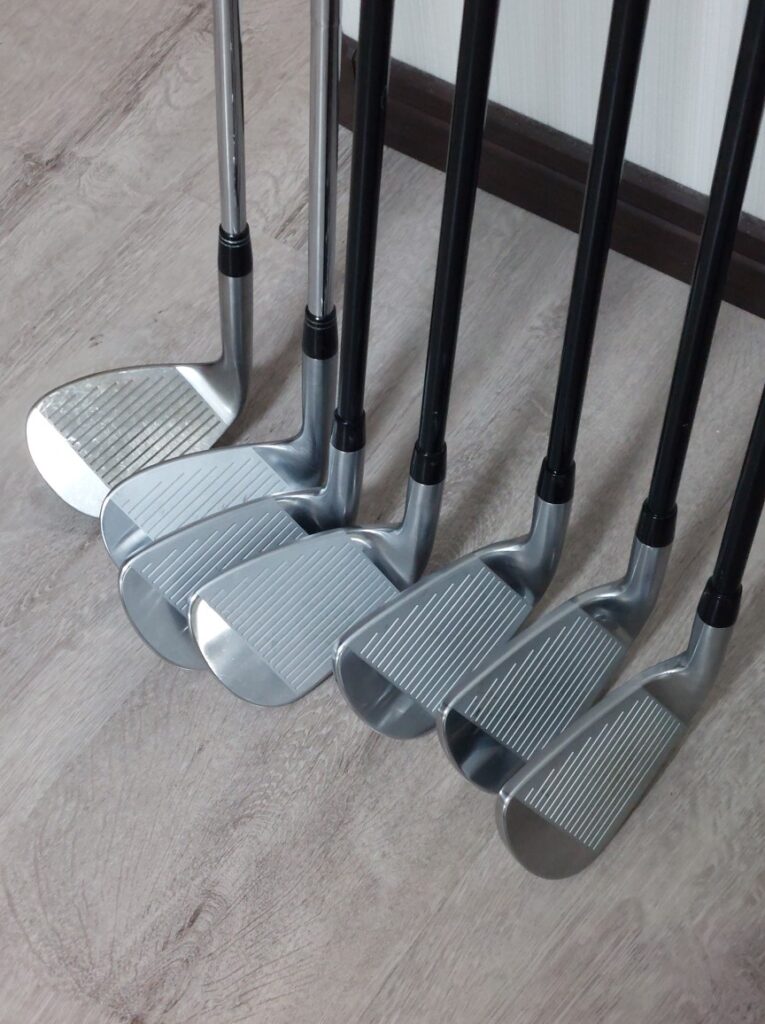 調整内容は?ボールが左につかまりすぎるので、ライ角を1度フラットにしてほしいとの事でした。「ウェッジですか?」と聞くとウェッジ一本抜かして合計7本、普段はクラブを数日、預かって、じっくり調整して仕上げるですが・・・すぐにクラブを使いたいと・・・