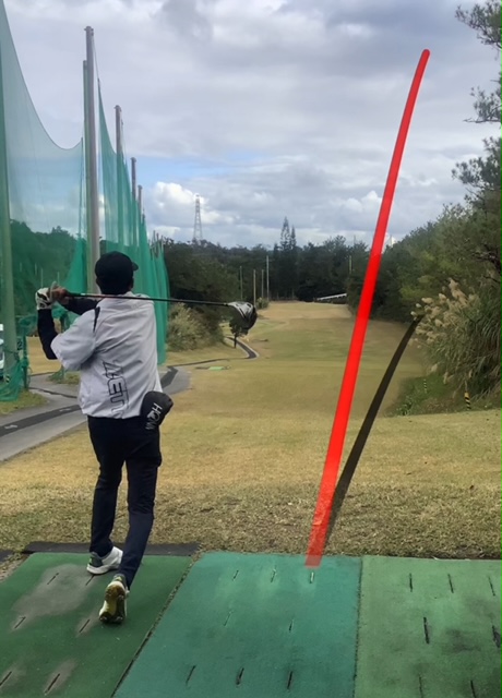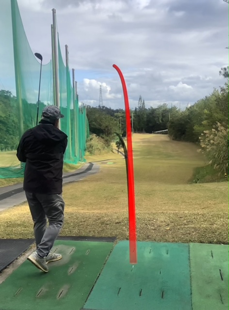 15番はもミドルのパー4、「Smooth Swing」で弾道の軌道を撮るから良いショットしてね! 自分は、4番目に打つことに。やっぱり、前の人にショットを意識しちゃうのかな?1番手の漢那さんが右にOBすると2番目の東さんが左に、左を警戒して?今度は3番目の佐渡山さんが右にOBとジグザグで、自分はこの日、最高の東今日一郎(この日の一番良いショットの事)でフェアウェーど真ん中に!セカンドをピッタリ寄せてが・・・また、志村けんで登場でダッフンダ!の3オン2パットでボギー。