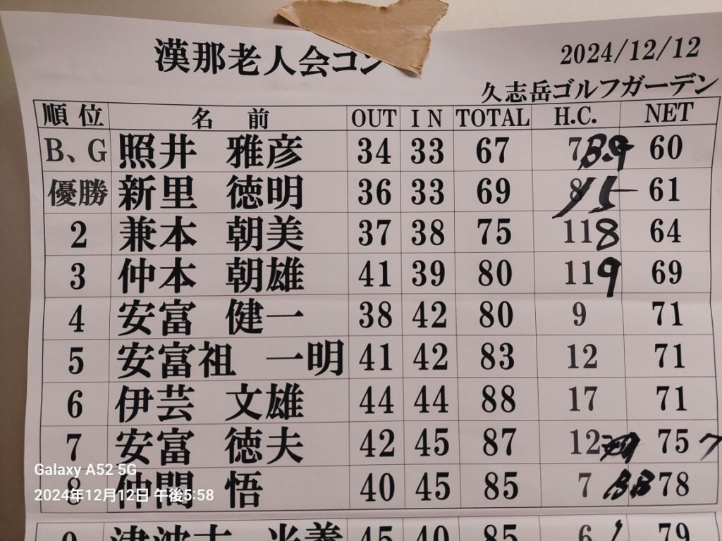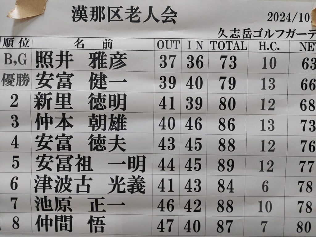 いつも好成績の老人会ゴルフで久志岳に行って来ました!今回は人数が少ないけど最下位です!