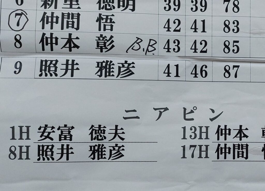 反省会に顔を出すと、他の組の参加者の人たちから、自分のあまりに悪いスコアーに「照井さん今日はどうしたの?」と聞かれる始末、次回はある程度のスコアーで回れるように、足と目が治っていれば良いな!でも、ニアピンが一つだけ、何とか取れました、賞品は宜野座村のゴミ袋大なので助かります!