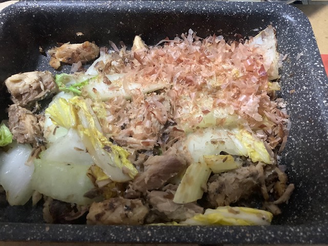 PS.セカンドワークの同僚から、サバの水煮の缶詰をいただきました、自分はサバ缶は味噌煮タイプで、味クーター(沖縄弁で濃い目)の方が好きなんで・・・ざく切りの白菜と炒めて、かつお節に醤油をかけていただきました。簡単だけどデージーマーサンに、ご飯のオカズが出来ました。