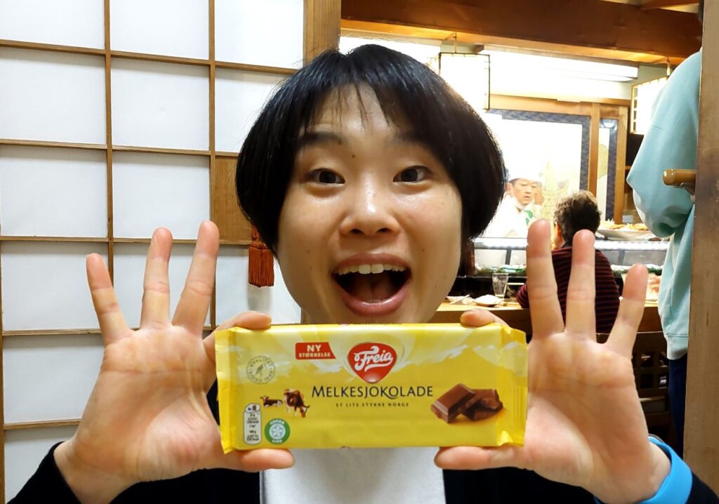 ん?もしかして、W杯の遠征でノルウェーに行ってる?と思って有希選手に頼んで当時買って来てもらいました。それを覚えていてくれたのか?今回もテルリンに買って来てくれました超ー嬉しいさー!沖縄に帰って、美味しくてあっという間に食べちゃいました、「死に?デージーマーサン!」