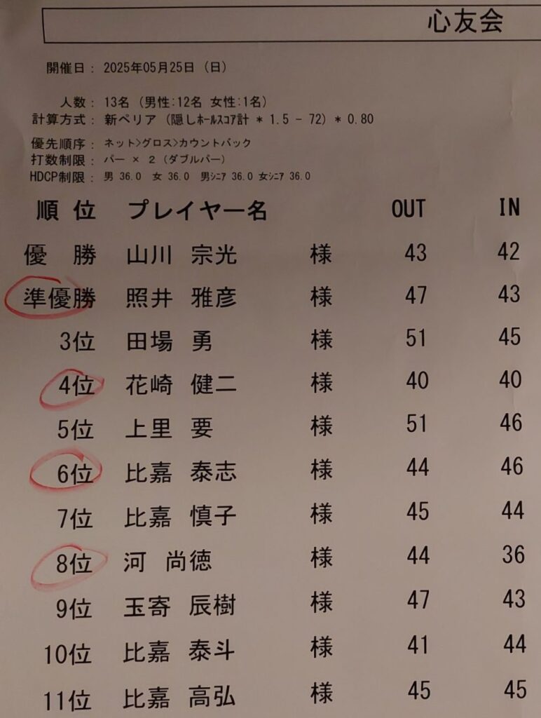 PS.部分的にビックイニングがありますが・・・ゴルフの少しずつ良くなってきてます。ちなみに、ダブルペリア戦ですが、OBMコンペは優勝して今季4勝目、心友会コンペは2位でした。