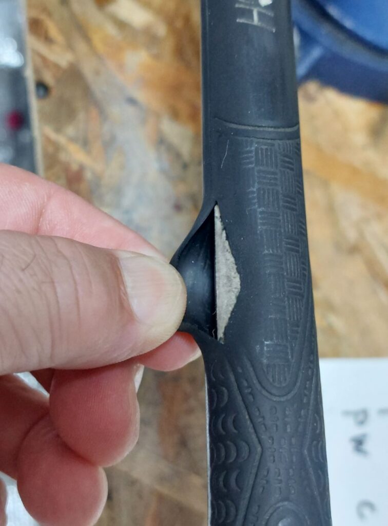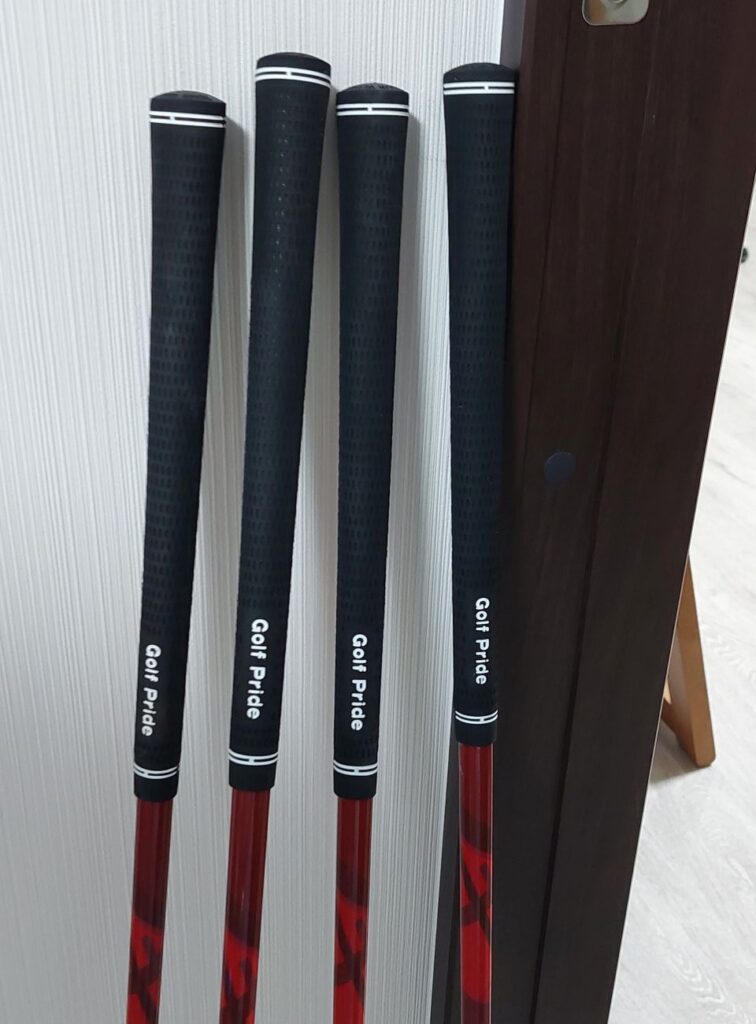 PS.大会の同じ組に福山地区コンペでの一緒にラウンドしている漢那さんアプローチの後にパターをして、自分が彼のアイアンを拾うと、グリップがすり減って、穴が空いていて、ボロボロ。早速、営業して「グリップ交換しますよ!」大会後、テルリン工房でアプローチウェッジを含めて4本交換しました。