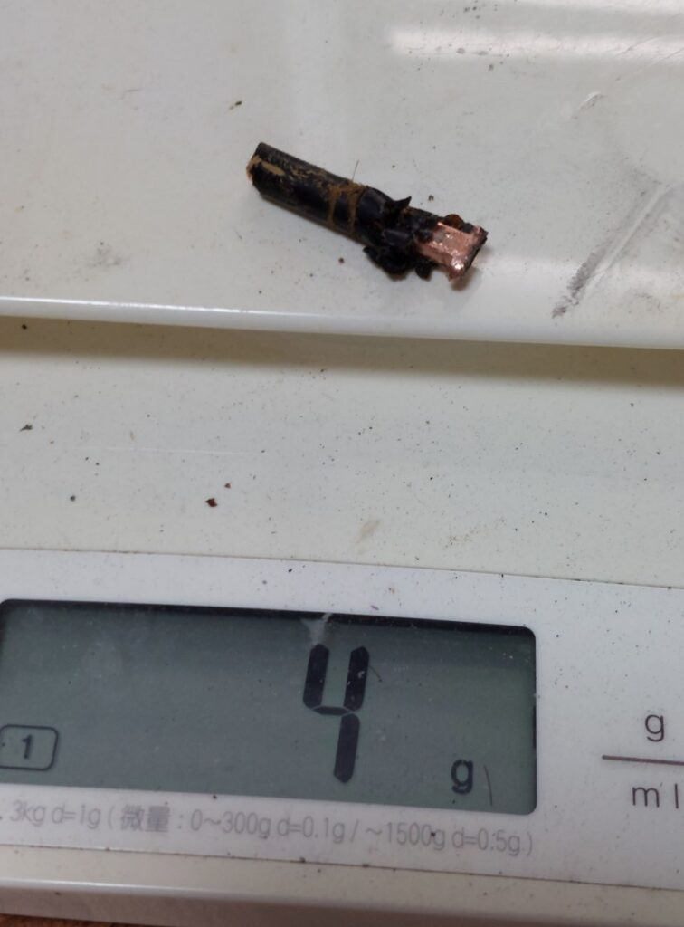 抜いたシャフトには、チップ部分に4gの真鍮の重りが入ってたので、外して、仮組して、色々測って見ました、すると、テーラーメードのスリーブの先端部分の長さなどがあり、クレージーを入れたシャフトの長さは46.25インチ(最近の公式大会に出る規定より0.25インチ長い)で、長さが1.25インチ伸びたせいで、バランスはD6さらにハンマーバランスに、振動数も元のクラブが刺さっていた、267cpmから258cpmとSぐらいの硬さに。