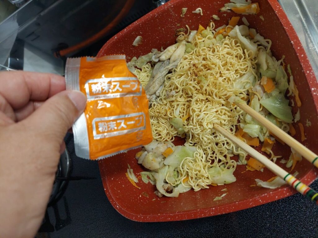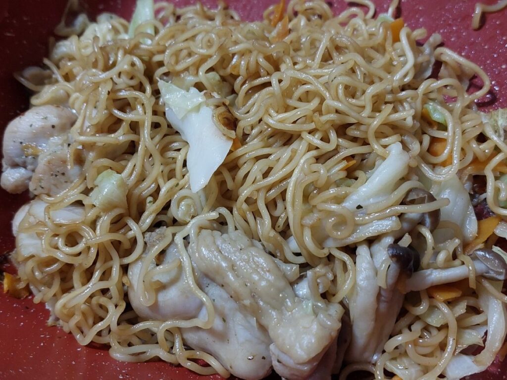 PS.乾麺のラーメンで新しいテルリンレシピを作りました、鶏肉から染み出る油を使いながらミックス野菜を炒めて、そこに乾麺を投入水蒸気で柔らかくなるかな?と思ったけど、無理で水を乾麺にかけて麺をほぐして、そこに味噌汁ラーメンの素をある程度入れて、最後はソースで味を調えて完成!食べて見ると、マルちゃんの焼きそば弁当より美味しく出来たぞ!新テルリンレシピ完成!