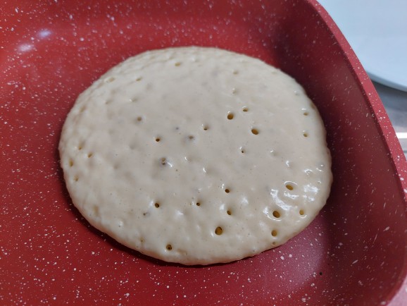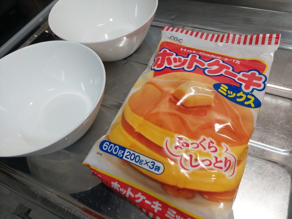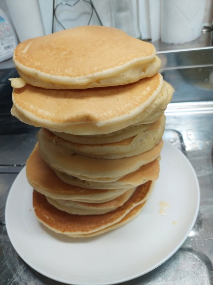 パンケーキを焼いて、貰ったミニマンゴーを使って、ホイップクリームをかけて完成です!