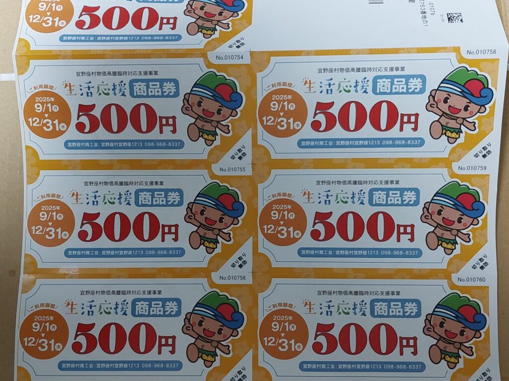 超ー!助かるー!宜野座村から生活応援商品券が5000円分郵送で届きました!