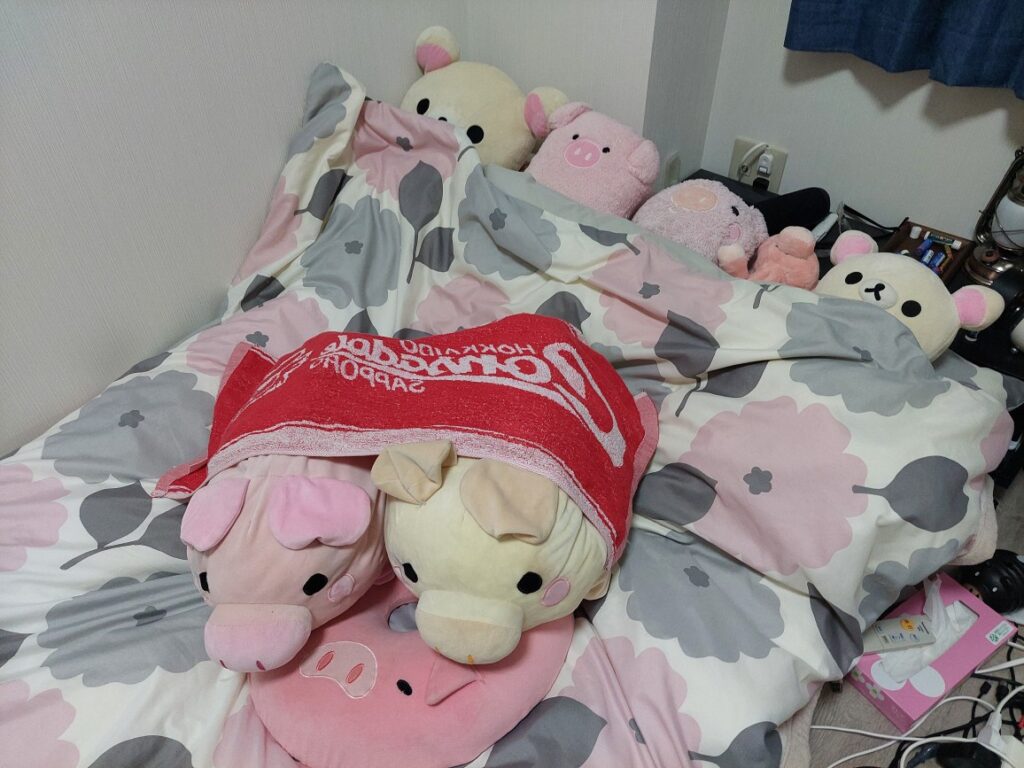 今回もセカンドワークの9日夜勤明けで、宜野座の自宅には帰らず、10日朝そのまま那覇空港に向かいます!毎回、行くのに色々準備して持って行きますが・・・今回はいつもテルリンと同行するピー(中央のピンクのブタのぬいぐるみ)はお留守番してもらう事に。