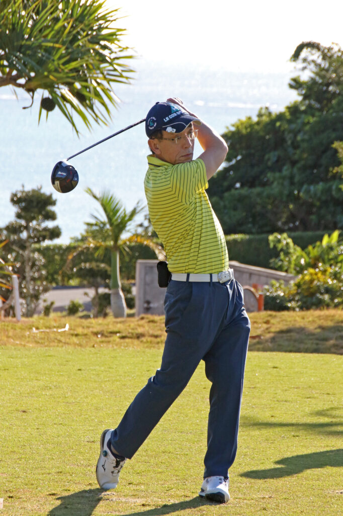 もう一人、中村パパ!息子の健人くんが沖縄に転勤になって、テルリンが無理やりゴルフを進めて、中村さんの息子の健人君にゴルフを教えて、数年前に親子で対決で沖縄に来て、見届け人になりました。この2人と弟の佳之がラウンドすると、なぜか?いつも別人?ってくらい、良いゴルフをします! この日も?絶好調で、土砂降りの雨が降る16番のセカンドまで良いゴルフをしてました。