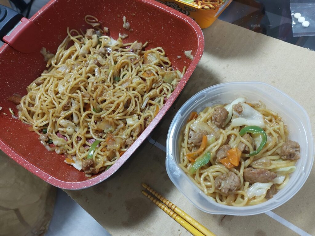 PS.主食は焼きそば!週何回ぐらい食べてるだろう!セカンドワークの仕事で16時間勤務の時は、インスタントのカップ焼きそばも食べてるし・・・週12食は食べてるかな?短時間でかなり、美味しく作れるようになりました。