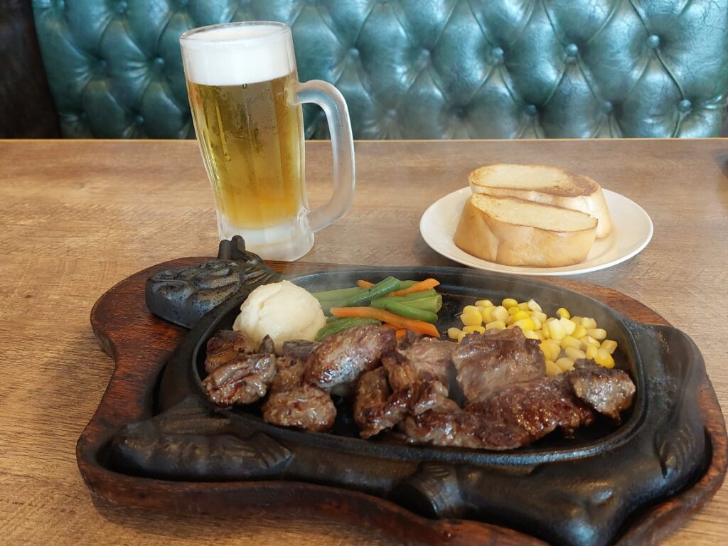 移動の飛行機は那覇空港からANAで11時20分発、大阪の伊丹空港です、9時にヨンナヨンナ?モノレールで、那覇空港へ!空港のカウンターもすごく混んでいて、40分ぐらい、並んでやっとスーツケースを預けて、飛行機の搭乗時間まで、一時間、サクッと那覇空港のテルリンの定番「もとなり」のラーメンを・・・と思たんだけど、88のステーキを食べて、搭乗口へ・・・