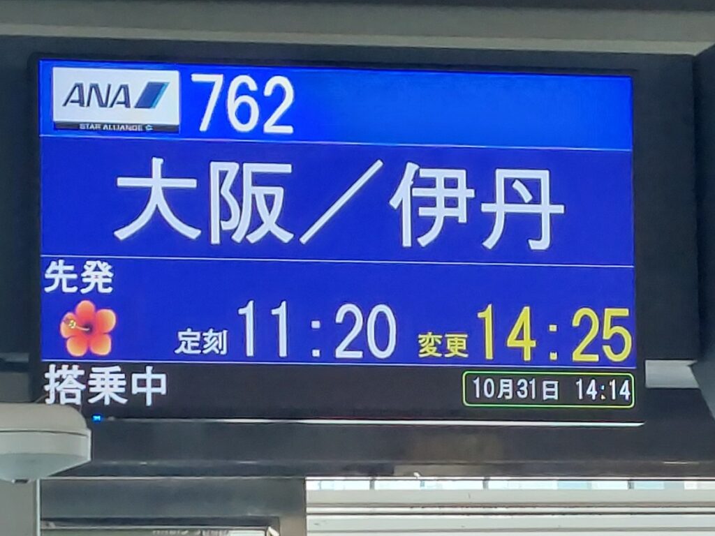 搭乗口に入って、プロ仲間に沖縄のお土産を買って、飛行機に乗るまでの時間も後少し?「えーーー?いきなり遅延?機材整備の為?」11時20分が13時20分に2時間遅れです!搭乗口付近で待っていると、時間付近になっても、全く案内がないので、スタッフへ聞くと更に遅延して、搭乗時間は14時25分?の3時間遅れ!実際は乗って飛び立ったのは、15時ちょっと前でした。