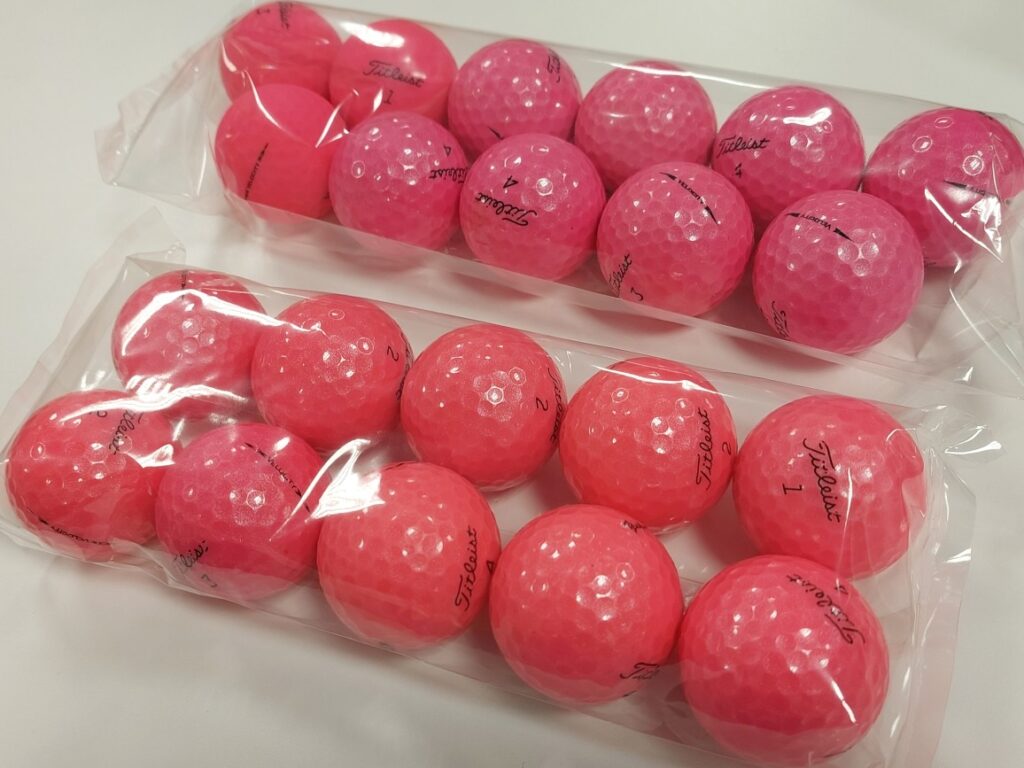 毎年、この時期に、弟が来るので、前にアルバイトをしていた「東邦商会」から、毎年買ってるボールがあります。販売がもう終了したピンクのボール「タイトリスト・ヴェロシティー」が用意できましたと・・・同じ種類が10個と年代がバラバラで11個の21個が合ったので、弟ように、すべて買いました。