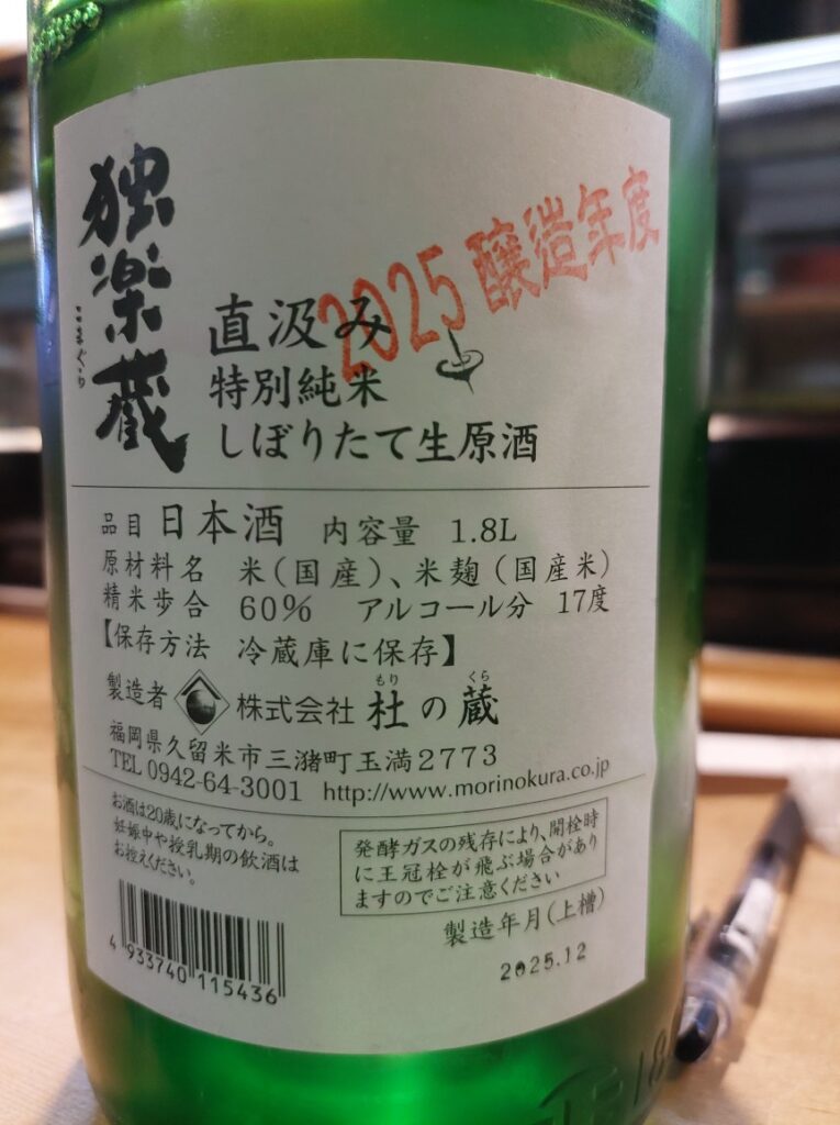 弟の佳之が、封を切ったばかりの日本酒「これ、原酒見たくて上手い!」と何杯もお代わり、テルリンもビールを飲み終わってから参戦、「確かにピンとしていて、美味しい」弟の佳之は見ていなかったけど、ラベルを見ると福岡の日本酒で「独楽蔵」(こまぐら)と言う純米酒で、よく見ると、しぼりたて生原酒でした、流石飲んべーさんです!度数も日本酒では高い17度、結局、封を切って、テルリンブラザーズでほとんど空けちゃいました!