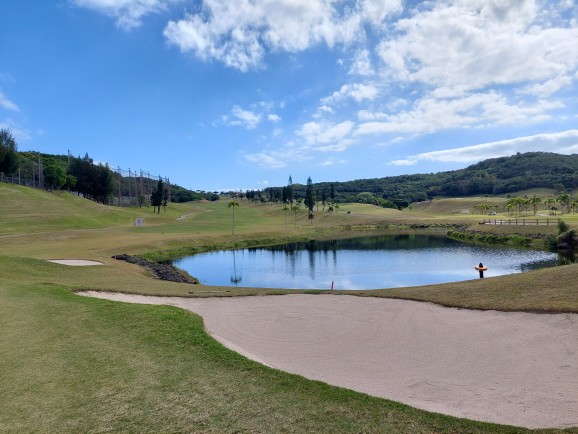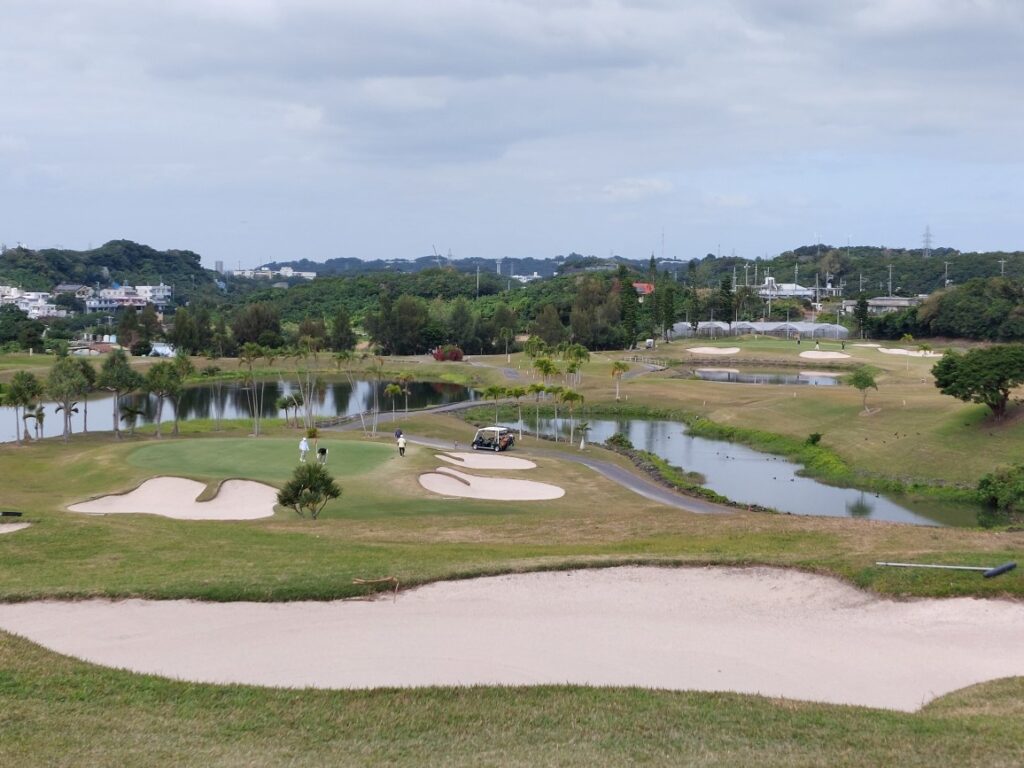 届いたのは、オーシャンキャッスル向かう途中の高速でハンズフリーで電話に出ると「クラブのお届け物が・・・」とヤマト運輸のいつものお兄ちゃんから「今は出先なんで、ラウンド後取りに行くので、宜野座のヤマトに置いといて」と話しているとナビが「左です!」えーーー!遅いよ!話していて「300メートル先、左です!」を聞き逃した?本来、北中城インターで降りるのは通過してしまい結局、西原インターで降りて、下道で戻って30分以上到着にかかっちゃいました。ヤレヤレ!