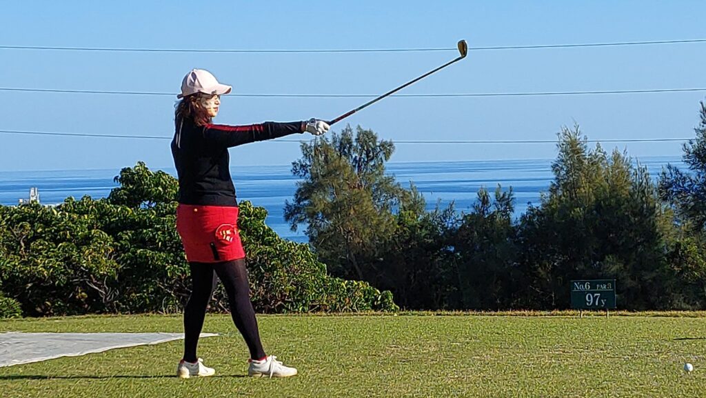 オーシャンキャッスルは結構トリッキーなコース、宜野座ゴルフクラブよりは、OBは少ないけど、完全にどちらかはダメなホールが多いです。前回、弟が来ていた時の懸案事項?腰痛で飛ばなすぎるので、5ウッドより飛ぶクラブが急務でした。そこで、前から気になってた、ダンガン7ブラッシーのRを新品で購入しました。