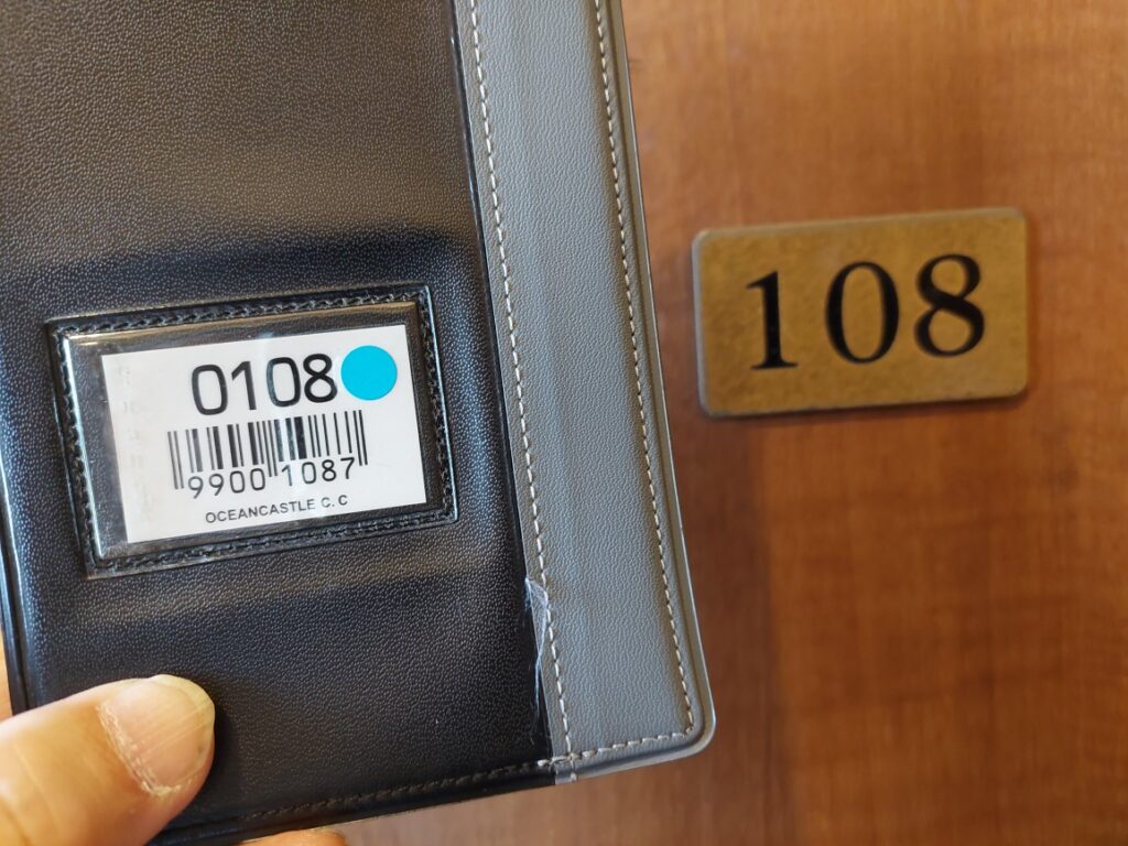 ジャジャジャジャーン!テルリンのいつものロッカー番号チェック!12日のオーシャンキャッスルのロッカー番号は108番、腰イタイイタイ病?のテルリンには、超ーありそうな不吉なロッカー番号です。