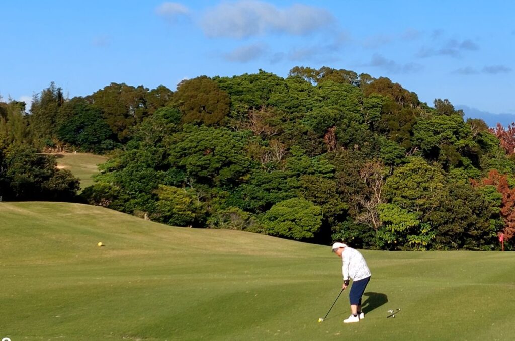 月に一回?出入りの業者を集めた、ゴルフコンペを宜野座カントリークラブで開催していて、テルリンも東邦商会の野島社長から誘われ、行って来ました。申し込みが早かったので、腰のイタイイタイ病は何とかなるかな?と高を括ってましたが、当日まで、改善されずの強行参加となりました。