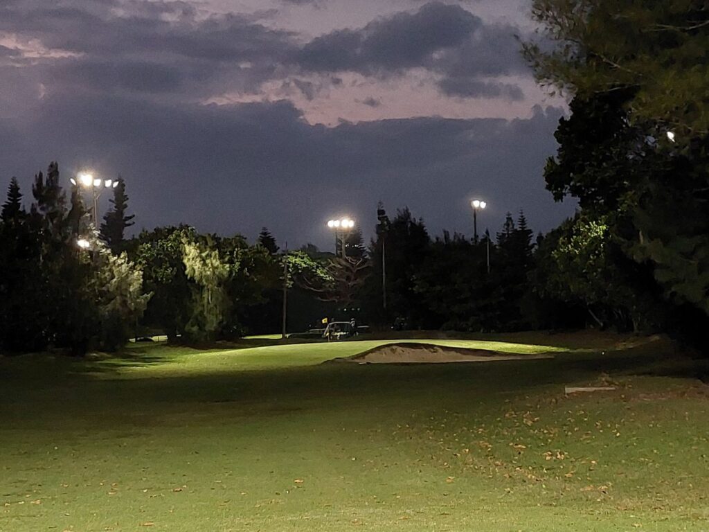 3月1日は北海道来ているゴルフ友達の吉田さんと、心友会のゴルフコンペに参加するので、前日に調整を兼ねて、ミニコースの残波のナイターに行って来ました。特に沖縄は芝目が強いので、巡目と逆目の登り下りで差が、内地や北海道(沖縄の人は北海道も内地だと思ってますが違います)と比べ物にならないぐらい、違います。26日の宜野座でコンペで吉田さんは、グリーンに難儀していたので、調整も兼ねての28日に残波のナイターでラウンドして来ました。