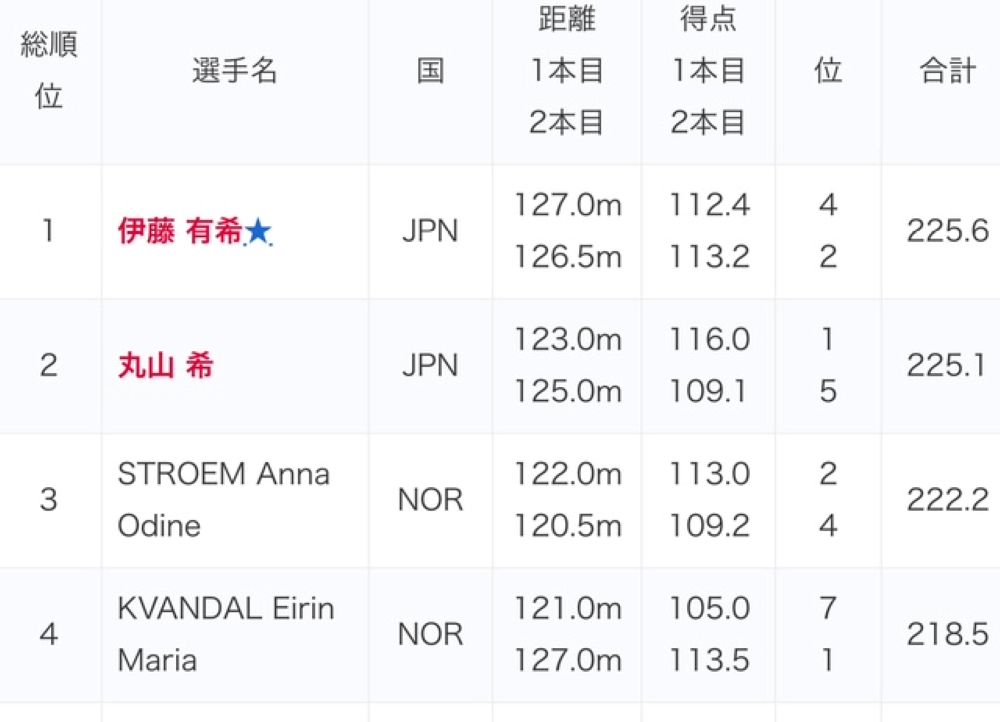 やったー!伊藤有希ちゃんが、2シーズンぶりにW杯ジャンプで優勝!丸山選手が2位でワンツー・フィニッシュ!大パチパチ!