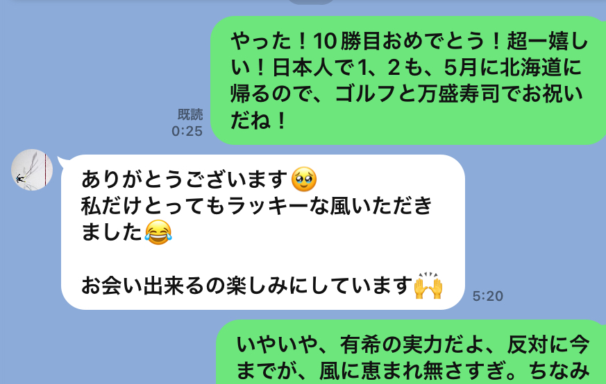 今回のオスロ大会、第1戦目の予選では伊藤有希ちゃんが1位で丸山選手が2位、第1戦目の決勝の結果は残念ながら、有希ちゃんは11位で丸山選手が2位でしたが・・・第2戦目の予選が有希ちゃん4位で丸山選手が5位で、好位置?から決勝が有希ちゃん1位、丸山選手が2位の表彰台を日の丸飛行隊がワンツー・フィニッシュでした!パチパチ!早速、テルリンが祝福のラインを送ったら返信してくれた嬉しい。