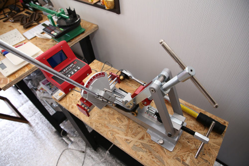シャフトからクラブヘッドやスリーブを抜く作業では、ヒートガン、バネ式シャフト抜き機、非接触温度計を使用しています。