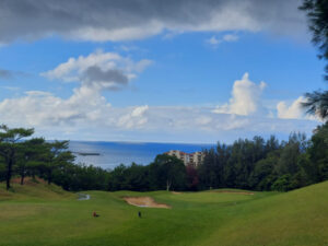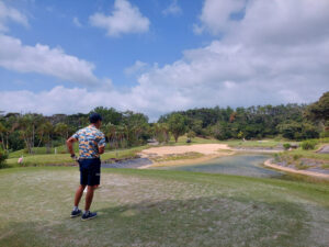 2022-10-22 18:22:00 沖縄、あるある?あの、カミナリがゴロンゴロン、大雨でで道路冠水の、あの天気から、まさかよー!一時間半で、天気回復!やっぱり、コースに来てみないと、わから …